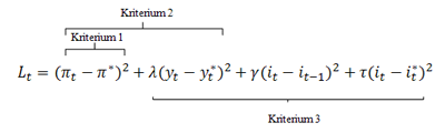 Kriterium 1, som sier at inflasjonsmålet nås, dekkes av det første leddet. Tapet er større jo mer den faktiske inflasjonen πt avviker fra målet π*. Kriterium 2 sier at for en gitt utvikling i inflasjonen vil tapet Lt øke desto større svingningene i aktivitetsnivået er, representert i første og andre ledd. Kriterium 3 sier at pengepolitikken skal være robust og understrekes av andre, tredje og fjerde ledd.