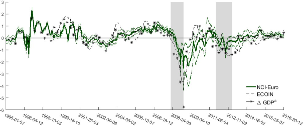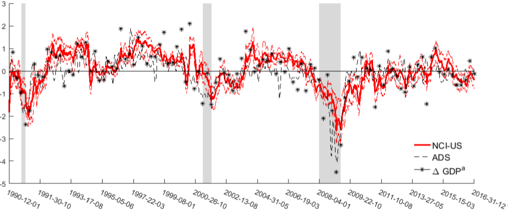 In Figure 1, we plot the estimated news-based business cycle indicator together with output growth and existing state-of-the-art coincident index estimates. It is clear that our indicators track the state of the economy very well. In our research, we formally show that all indexes provide a good description of the business cycle phases, confirming the visual impression. In particular, the news-based narrative approach quantifies the phases of the business cycles almost equally well as coincident indexes estimated based on hard economic indicators.