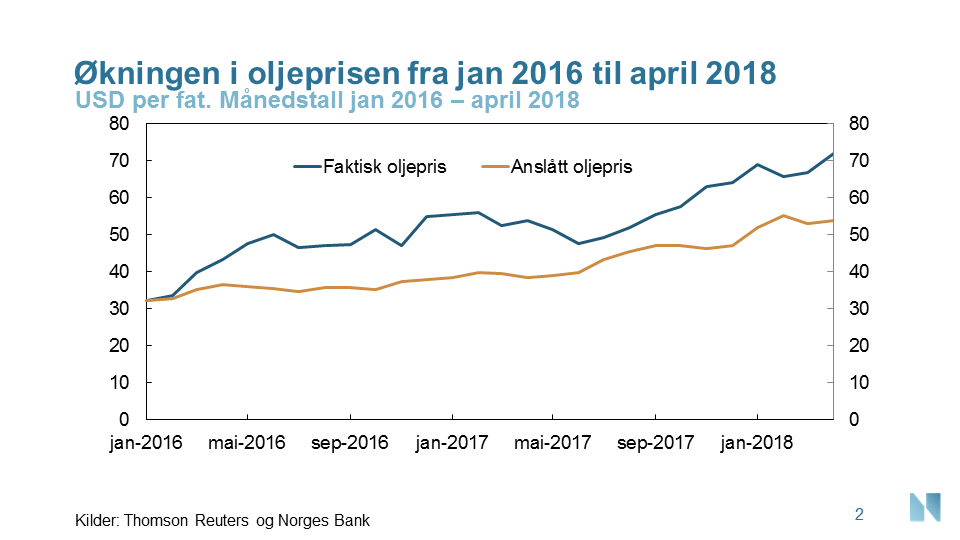 Følgende kan fremheves når vi sammenholder anslaget med en beskrivelse av utviklingen i oljeprisen siden starten av 2016.