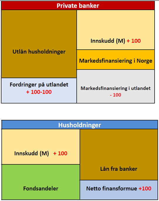 Under koronapandemien sparte privatpersoner også mer i verdipapirfond, særlig i 2021. Selv om den som skal kjøpe fondsandeler bruker av pengene på sin bankkonto, så vil ikke sparing i fond redusere samlede innskudd i bankene, det vil bare være noen andre som holder innskuddene. Dette gjelder så lenge fondene investerer i Norge og kjøper verdipapirer fra norske aktører (utenom av staten eller bankene), se eksempel 2 i vedlegget.