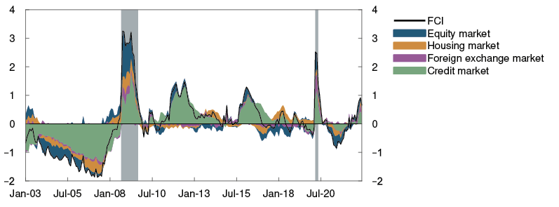 Creditworthy firms and households appear to have ample access to credit, even if there are some signs of a tightening of banks’ credit standards. Bond risk premiums have risen markedly in 2022, particularly for commercial real estate firms.