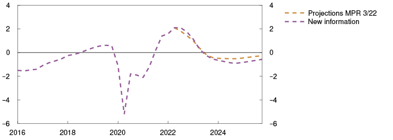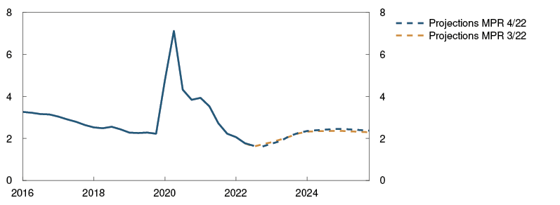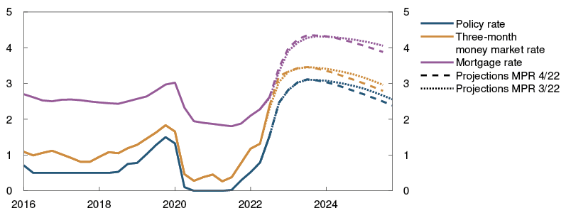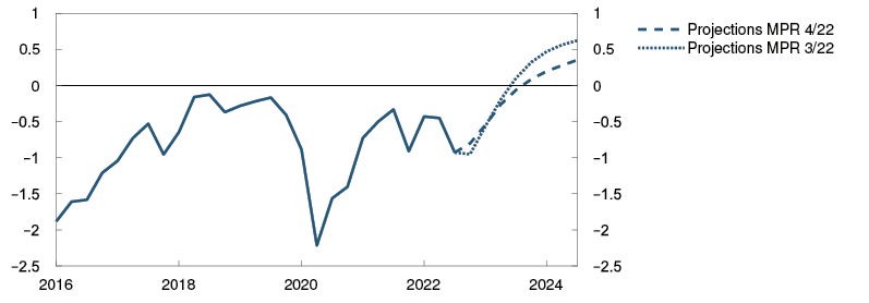 Since the September Report, inflation has been higher than projected and is expected to remain high for longer than previously projected. At the same time, the labour market appears to be a little tighter than anticipated. On the other hand, the policy rate has been raised considerably over a short period of time, and monetary policy has started to have a tightening effect on the economy. There are signs that the slowdown may prove somewhat more pronounced than envisaged in September.