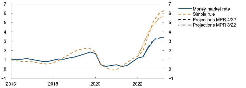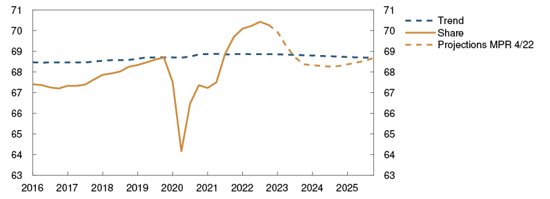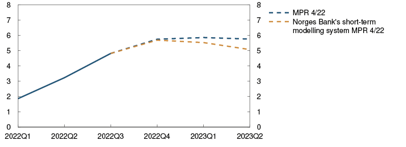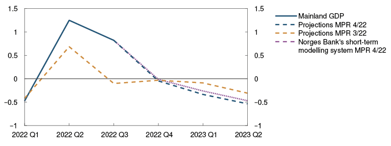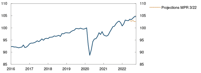 Activity in the Norwegian economy has been higher through 2022 than previously assumed, and mainland GDP has increased faster in recent months than expected. High inflation and higher interest rates have reduced household purchasing power, but consumption has so far remained higher than projected in the September Report.