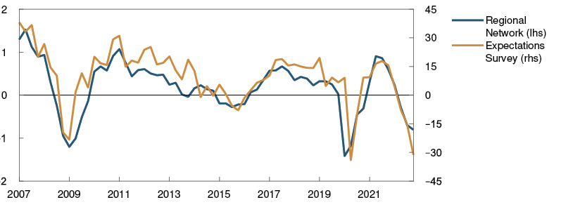 Among most of Norway’s trading partners, labour markets are tight, and GDP rose more than expected between 2022 Q2 and Q3. Growth picked up in the US and China, while activity levels in the euro area and the UK were little changed.