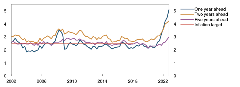 According to Norges Bank’s Expectations Survey, inflation expectations for the coming years have increased recently. Long-term inflation expectations increased further in 2022 Q4 and are above the 2% target.