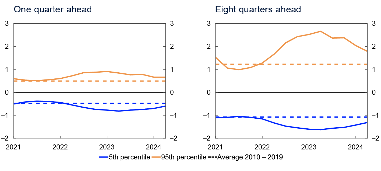 The policy rate forecast in this Report implies that the policy rate will remain at 4.5% to the end of 2024 before being gradually reduced from 2025 Q1. The forecast is little changed from the June Report but indicates a slightly faster decline in the policy rate through 2025. Economic growth is set to pick up slightly in the years ahead. Unemployment will likely edge up. Inflation is projected to approach 2% towards the end of 2027.