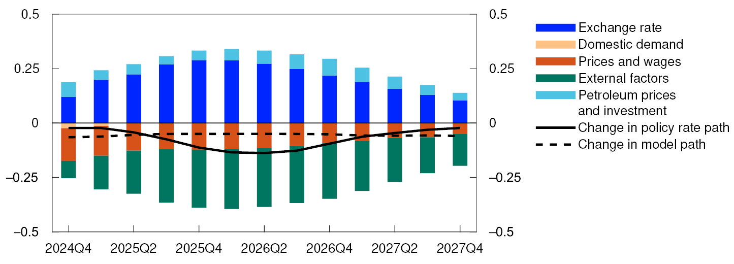 In recent years, the policy rate has been raised significantly to tackle high inflation. Since December 2023, the policy rate has been held at 4.5%. The interest rate has contributed to cooling down the Norwegian economy and to dampening inflation. Unemployment has edged up from a low level. Inflation has declined markedly from its peak, but underlying inflation has not declined to the same extent. Moreover, the rapid rise in business costs and the krone depreciation are expected to restrain further disinflation.