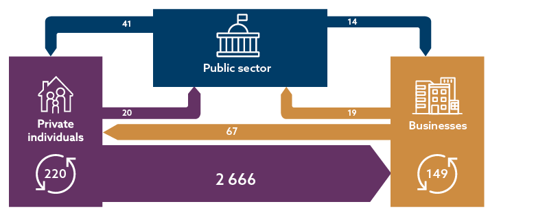 Chart 4 Payments between sectors in Norway. 2020. In millions of payments