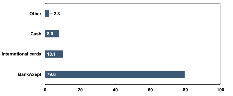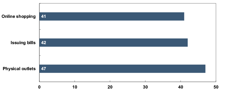 24 Mastercard’s estimates are based on calculations using transactions in the NICS interbank system. The estimate seems reasonable in view of the information we obtained in this survey.