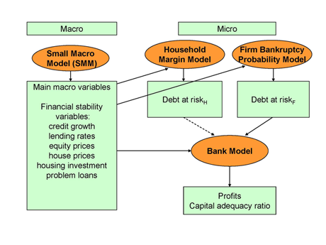 The Bank has developed what it calls its small macro model (SMM) to ensure consistency in stress scenarios and to see the effect of specific kinds of stress impacts in the macroeconomy compared with the baseline scenario.