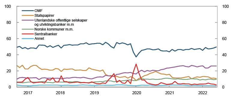 Usikkerhet om vekst- og inflasjonsutsikter har tidvis gitt høy volatilitet i finansmarkedene det siste året. Det har bidratt til dårligere markedslikviditet. Likviditeten har særlig blitt forverret i statsobligasjonsmarkedene, som også kan skyldes strukturelle forhold4 og at enkelte sentralbanker har begynt å bygge ned sine balanser. Vedvarende svekket markedslikviditet kan bidra til å forsterke prisbevegelser i perioder med markedsuro. Det kan også redusere tilgangen på markedsfinansiering for stater, banker og foretak.