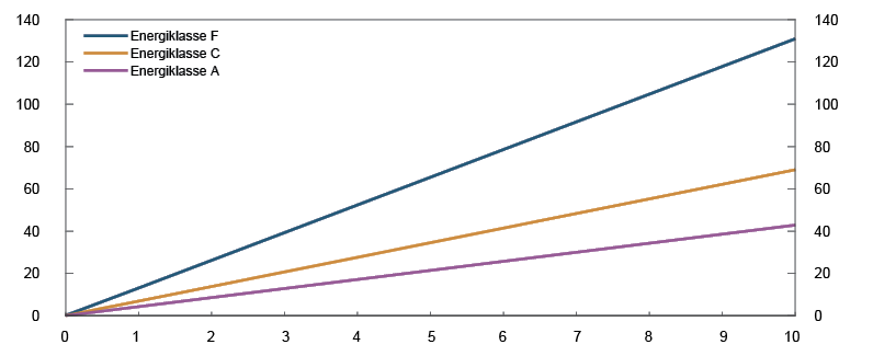Klimaomstillingen kan gi strukturelle endringer i næringseiendomsmarkedet. Våre analyser viser at brukskostnadene til lite energieffektive bygg kan øke betydelig ved høye strømpriser over tid, som i neste omgang kan svekke leiepriser til slike bygg, se «Energieffektive bygg blir viktige i årene som kommer». Effekten på leieprisene i en slik situasjon er svært usikker, og utslag i leiepriser kan dempes av energieffektiviserende tiltak. Analysen viser også at under 25 prosent av næringsbygg i Norge har et registrert energimerke, og blant disse har under halvparten et godt energimerke. Andelen bygg med energimerke er høyest for kontorbygg, som er et segment bankene er særlig eksponert mot. Norge har ennå ikke på plass et system som gjør det mulig å klassifisere norske bygg i henhold til EUs taksonomi, som skal inn i norsk lov i 2023. Mangelfull rapportering etter taksonomien kan få konsekvenser for norske bankers evne til å utstede «grønne lån», og dermed muligheten til å hente «grønn finansiering» med lavere risikopåslag.