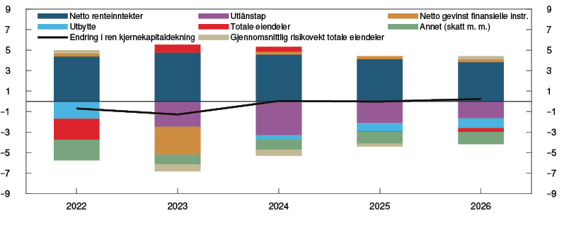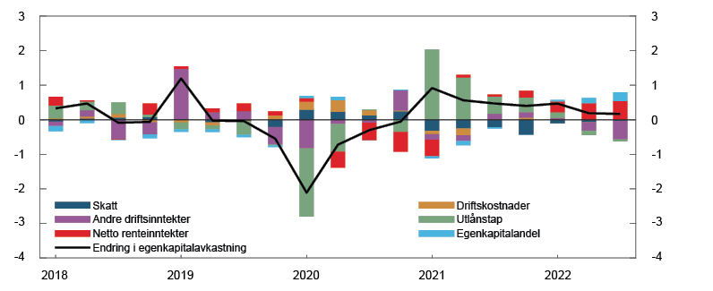 Samlet sett vurderer vi det norske finansielle systemet som godt rustet til å møte risikoene vi står overfor. Skjerpede krav til kapital og likviditet gjennom flere år har gjort banker i Norge og mange andre land bedre i stand til å møte kriser. Den gode inntjeningen i norske banker er førstelinjeforsvaret for å dekke tap, og gir fleksibilitet til å tilby utlån til kredittverdige foretak og husholdninger. Vi venter at bankene fortsatt vil ha god lønnsomhet, men tapsrisikoen har økt.