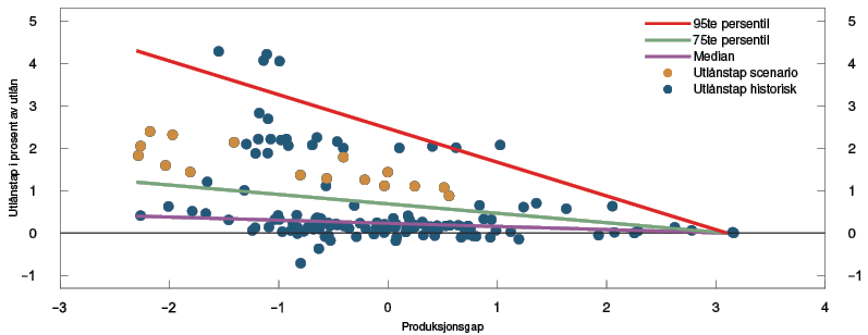 Stor usikkerhet om det makroøkonomiske bildet fremover innebærer økt risiko for at nye, negative hendelser kan inntreffe, og husholdninger med mye gjeld kan være særlig utsatt. En sensitivitetsanalyse («Husholdningene er robuste overfor moderate økninger i renter og andre utgifter») viser at i et scenario med blant annet høye renter og kraftig boligprisfall, kan mange husholdninger få problemer med å dekke normale utgifter og renter. Da kan bankenes tap øke som følge av at husholdninger misligholder gjelden sin. Analysen illustrerer at mange husholdninger i en slik situasjon kan bli nødt til å redusere konsumet til et relativt nøkternt nivå. Det kan utgjøre en trussel mot finansiell stabilitet siden innstramming i konsumet kan svekke inntjeningen til foretak og dermed deres gjeldsbetjeningsevne. Stresstesten i kapittel 3 illustrerer et slikt scenario.