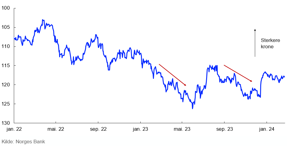Importveid valutakursindeks (I-44). 1. januar 2021–21. februar 2024