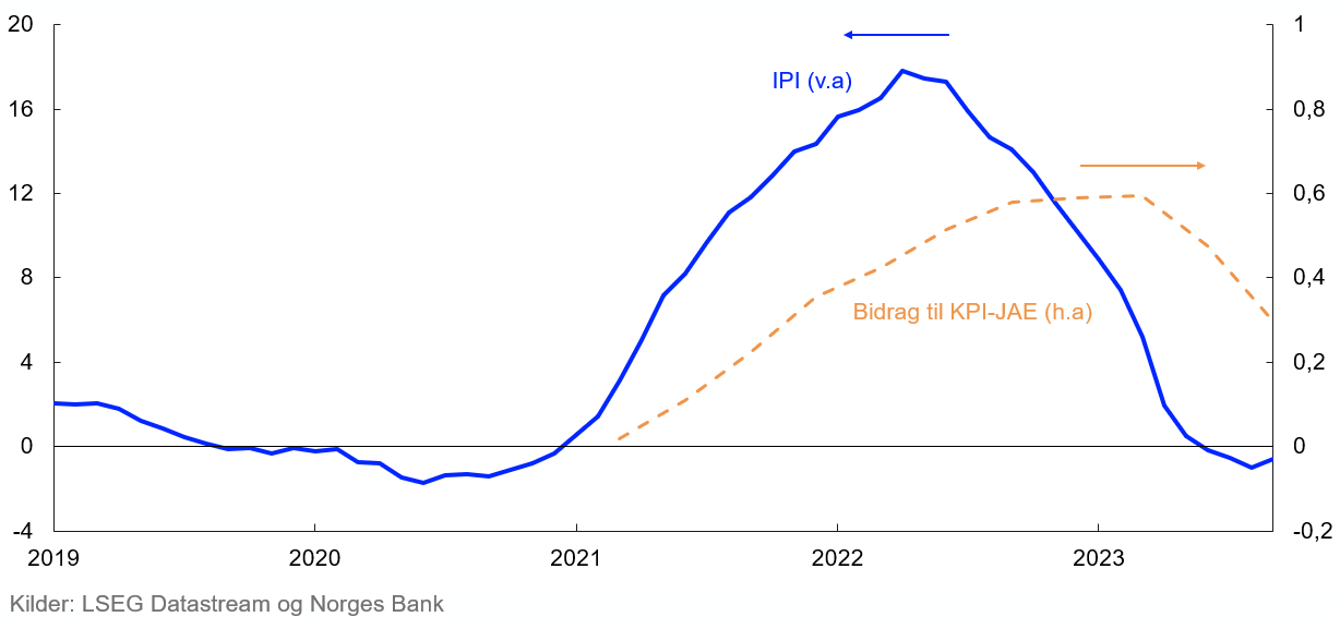 [2] For mer informasjon om indikatoren, IPI, se utdyping om «Importerte prisimpulser til innsats- og investeringsvarer» i Pengepolitisk rapport 4/23