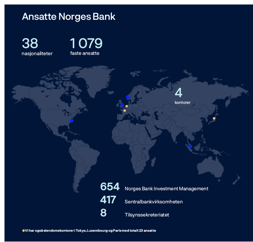 Hovedstyret er fornøyd med organisasjonens innsats og takker de ansatte for betydelige bidrag gjennom 2023. De ansatte er Norges Banks viktigste ressurs, og det arbeides systematisk for at alle i banken skal trives, utfordres og ha kompetanse til å levere på samfunnsoppdraget. Årlig gjennomføres en større medarbeiderundersøkelse, der blant annet medarbeidernes engasjement, trivsel og gjennomføringskraft kartlegges og vurderes. Undersøkelsen er et viktig verktøy i arbeidet med utviklingen av ansatte, organisasjonen og arbeidsplassen. Hovedstyret er tilfreds med resultatene fra årets medarbeiderundersøkelse og vurderer arbeidsmiljøet som godt. Se årsrapportens del om Samfunnsansvar og bærekraft for mer informasjon om våre medarbeidere og hvordan vi jobber for å være en attraktiv og fremtidsrettet arbeidsplass.