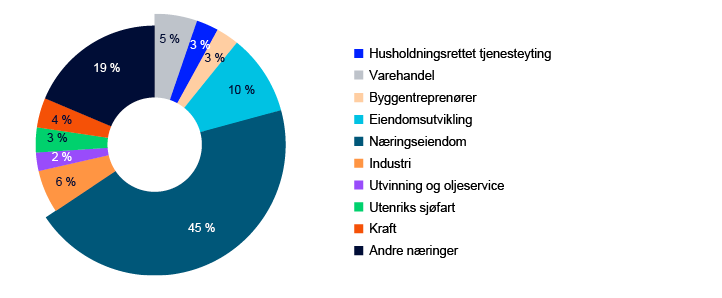 Bankene har også noe utlån til foretak innen eiendomsutvikling, som har fått svekket inntjening på grunn av økte renter, høye byggekostnader og lav byggeaktivitet. Det vil gjøre det mer krevende å betjene gjelden med løpende inntjening. Faren for tap i bankene dempes av at foretakene synes å ha nokså god soliditet.