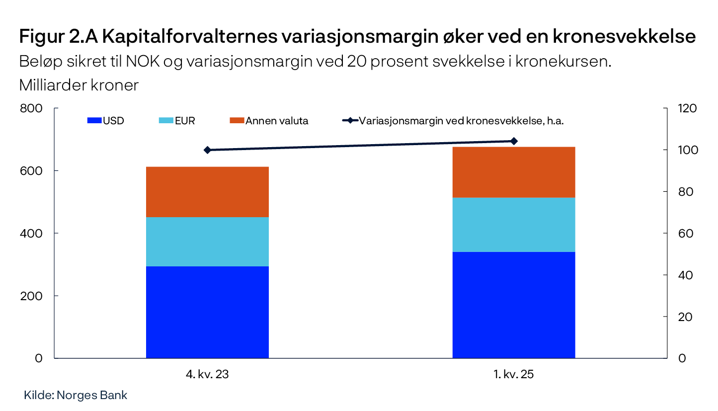 Selv ved reversering av innførte og annonserte tollsatser, vil usikkerheten som er skapt om rammene for internasjonalt økonomisk samkvem trolig vedvare. Det gir høyere risiko for forstyrrelser som kan påføre bankene både vanskeligere finansieringsforhold og tap. Sårbarheter i det finansielle systemet kan bidra til å forsterke virkningene.