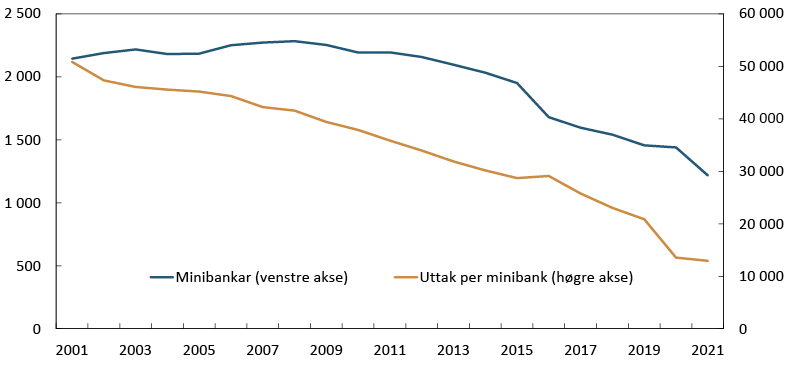 - Tabellen syner talet på stader der publikum kan setje inn og ta ut kontantar.