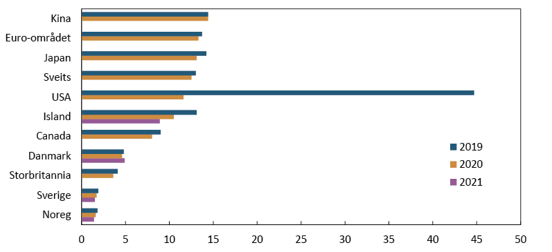 Utlendingar handlar mykje mindre i norske nettbutikkar enn nordmenn gjer i utanlandske nettbutikkar.12 Utlendingar stod i 2021 for 9,3 millionar slike handlar, med ein samla verdi på 9,6 milliardar kroner. Talet på handlar gjekk noko opp, medan den samla verdien av desse handlane heldt fram med å minke.