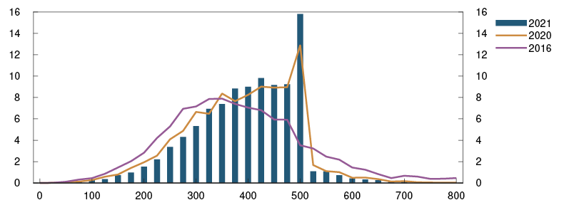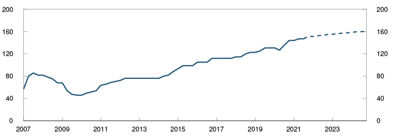 I forslaget til statsbudsjett er det lagt opp til noe lavere oljepengebruk i 2022 enn anslått i forrige pengepolitiske rapport. Etter at statsbudsjettet ble lagt frem, har regjeringen annonsert strømstøtte til husholdninger. I forbindelse med innføring av smitteverntiltak er det også gjeninnført finanspolitiske støttetiltak. Det vil dempe de økonomiske konsekvensene av den økte smitten og smitteverntiltakene.