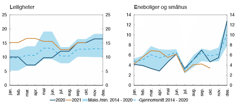 Aktiviteten i boligmarkedet er fortsatt høy, men boligprisveksten har avtatt. Gjennom høsten har veksten i boligprisene og kreditt til husholdninger vært om lag som ventet. Boliginvesteringene har vært lavere enn ventet, noe som trolig kan ses i sammenheng med en betydelig økning i byggekostnadene.
