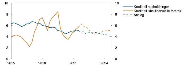 | Kreditt til husholdningene (K2) | 4,9 | 4,8 (0,0) | 4,9 (0,1) | 4,6 (0,1) | 4,1 (0,0) | |