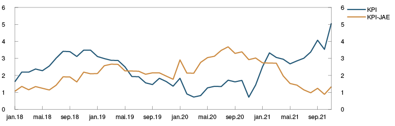 5 Periode: Januar 2018 – november 2021. KPI-JAE: KPI justert for avgiftsendringer og uten energivarer.