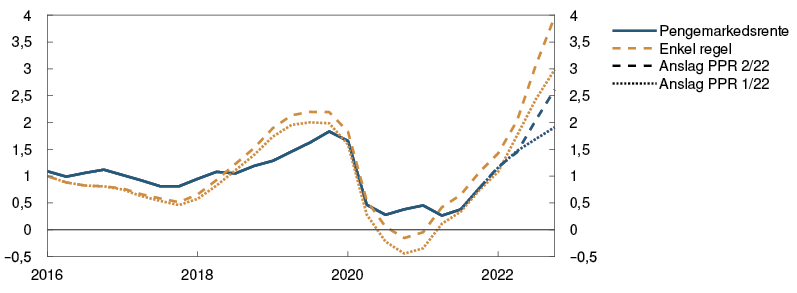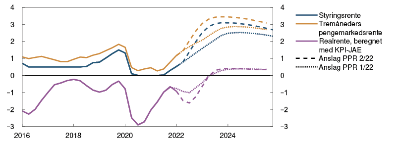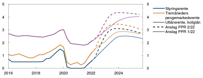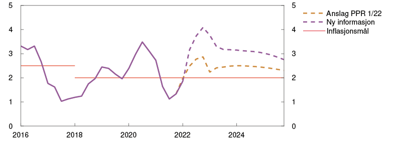 Utsikter til mer varig høy prisvekst tilsier en raskere renteoppgang enn tidligere anslått. En raskere renteoppgang nå vil redusere risikoen for at inflasjonen holder seg høy og for at det blir behov for en kraftigere innstramming i pengepolitikken lenger frem.