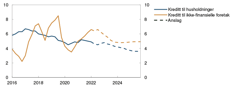 Prognosen for styringsrenten er oppjustert fra forrige rapport og indikerer en styringsrente som øker til rundt 3 prosent frem mot sommeren neste år. Det er over det som anslås som et nøytralt nivå på styringsrenten. Med en slik utvikling i renten er det utsikter til at inflasjonen vil avta og nærme seg målet på noe sikt. Kapasitetsutnyttingen anslås å holde seg over et normalt nivå de neste årene, og arbeidsledigheten anslås å holde seg lav. Veksten i boligpriser og kreditt ventes å avta.