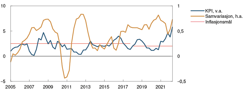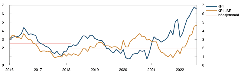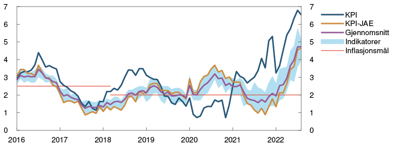 5 Periode: Januar 2016 – august 2022. KPI-JAE: KPI justert for avgiftsendringer og uten energivarer.