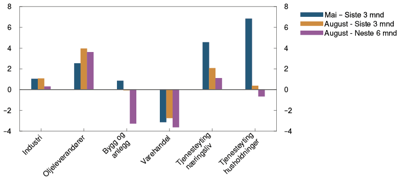 Vi anslår at aktiviteten i økonomien vil holde seg om lag uendret den nærmeste tiden og at den avtar noe neste år. Husholdningenes konsum er ventet å avta neste år, for så å ta seg forsiktig opp. God vekst i petroleumsinvesteringene og foretaksinvesteringene anslås å løfte aktiviteten de neste årene.