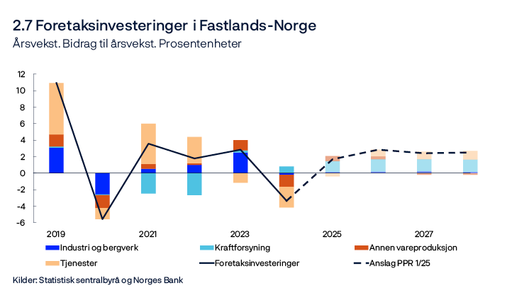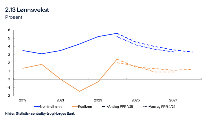 Renten ble hevet mye for å få bukt med den høye prisveksten, og siden desember 2023 har styringsrenten vært 4,5 prosent. Renten har bidratt til å kjøle ned norsk økonomi og til å dempe prisveksten. Arbeidsledigheten har de siste årene økt noe fra et lavt nivå. Kapasitetsutnyttingen i økonomien har avtatt og er nå nær et normalt nivå. Prisveksten har kommet mye ned fra toppen, men er fortsatt over målet. Høy vekst i bedriftenes kostnader vil trolig bidra til å holde prisveksten oppe fremover.