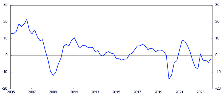 Samlet planlegger bedriftene at investeringsvolumet vil falle fra i fjor til i år, i tråd med det de ventet i forrige runde. De tror videre at investeringene vil endre seg lite i 2025. Flere bedrifter har allerede lagt bak seg store investeringer, samtidig bidrar høye investerings- og finansieringskostnader til at mange holder igjen på investeringene fremover. Med unntak av industrien, venter samtlige næringer et fall i investeringene inneværende år. De industribedriftene som planlegger å investere i år investerer særlig i energigjenvinning og tiltak for å bli mer miljøvennlige. Et fåtall investerer også i kapasitetsutvidelser.