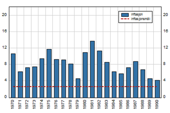 Figur 4b: Høy inflasjon og høye renter var det normale da forfatterne av denne bloggen studerte og kjøpte sin første bolig.