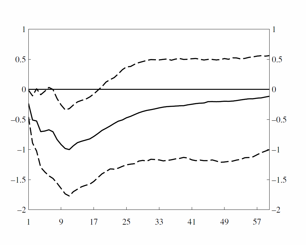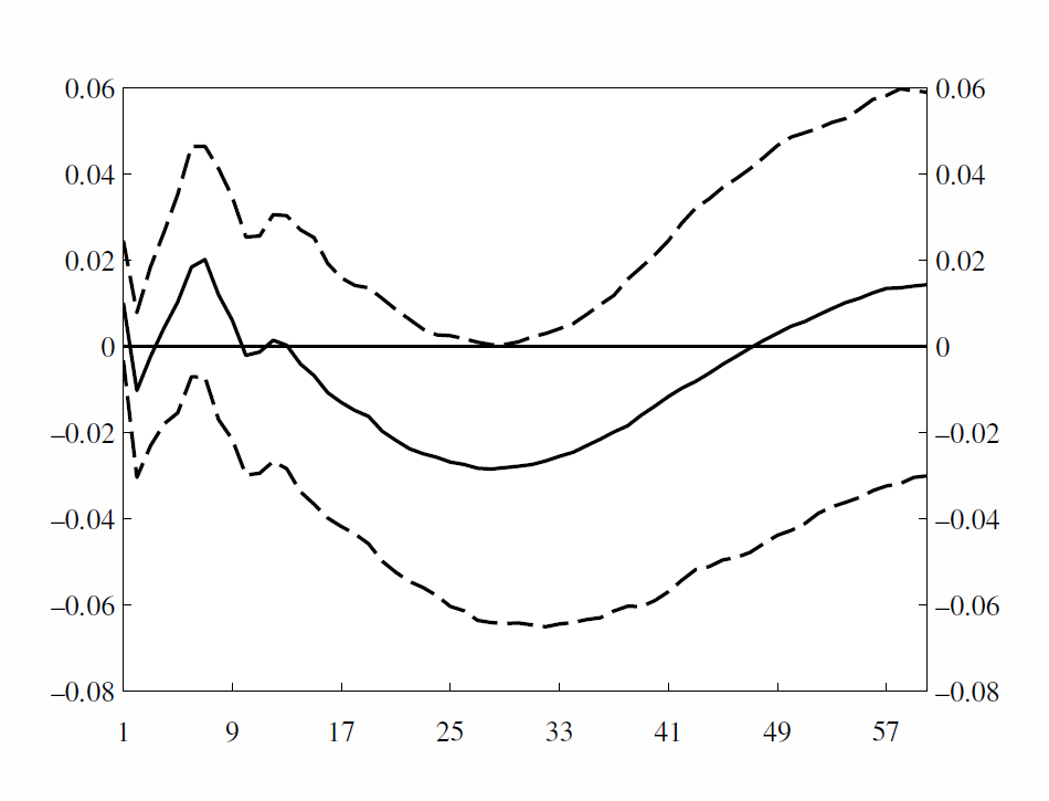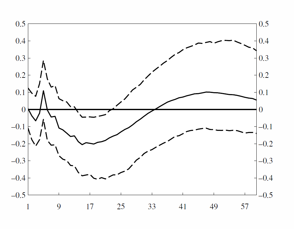 We also investigate monetary policy autonomy. We find that the central bank responds in a stabilizing fashion to a surprise increase in the unemployment rate, and reduces the interest rate (see figure 4).