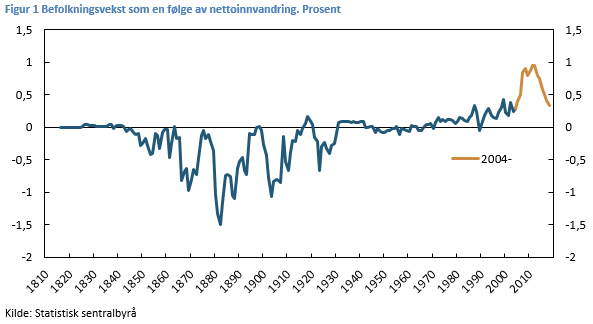 I 2004 ble Polen og syv andre østeuropeiske land innlemmet i EU. Som en følge av EØS-avtalen fikk innbyggerne i de nye medlemsstatene i praksis også fri tilgang til å bo og arbeide i Norge. Et stort antall benyttet seg av denne muligheten i de påfølgende årene. Relativt til befolkningen må vi mer enn hundre år tilbake i tid for å finne lignende folkestrømmer i Norge, men da var det nordmenn som flyttet ut, i hovedsak til USA, se figur 1. Utvandringen den gang skjedde i bølger, og utviklingen de senere årene ser ut til å følge et lignende mønster.