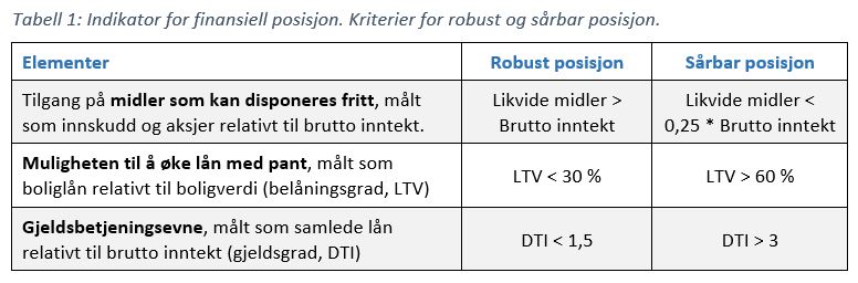 Husholdninger som er robuste ut fra ett eller flere av de tre kriteriene i tabellen ovenfor, har stor mulighet til å dekke uforutsette utgifter. De er gode kunder for bankene, og bankene vil ha stor interesse av å finne fleksible løsninger som for eksempel rente- og avdragsfrihet i en vanskelig situasjon. Husholdninger som er sårbare etter ett eller flere kriterier, har mindre å gå på. De har økt risiko for å havne i problemer.