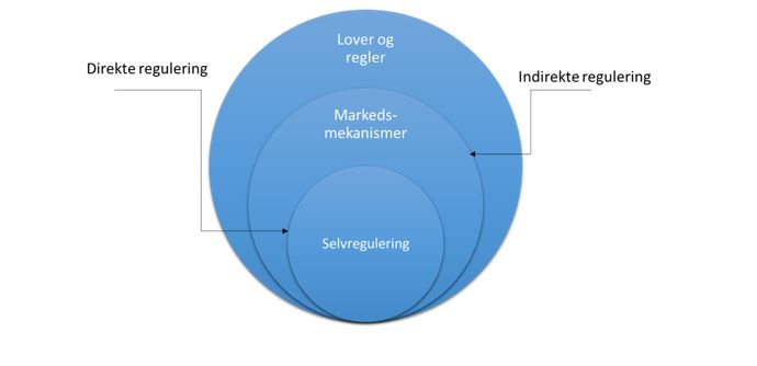 Forholdet mellom ulike reguleringsmekanismer og direkte og indirekte regulering kan illustreres i en figur: