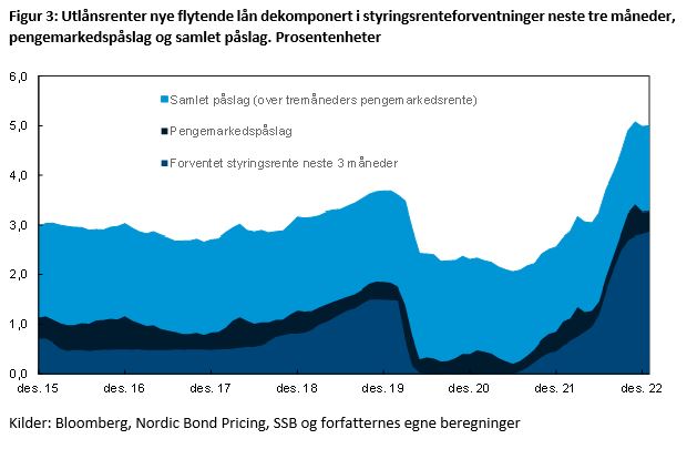 Hvor viktig er påslag utover styringsrenten for rentene foretak står overfor?