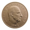 The coin's anniversary motif, “Seal” is designed by the designer Michael Guilfoyle. The motif is a modern rendition of Magnus VI Lagabøte’s equestrian seal (1278), which depicts a mounted king lifting a pair of scales. Twelve dots represent the members of the Court of Appeal.