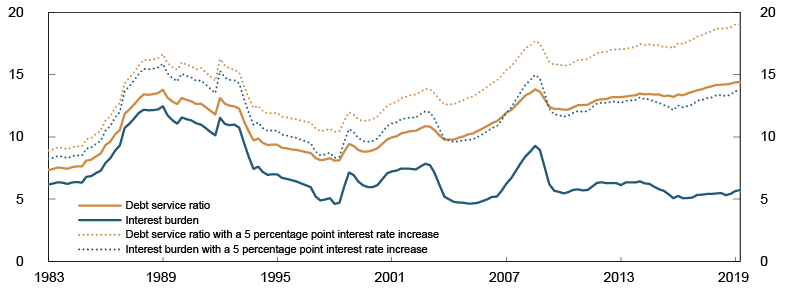 Moderate house price inflation is expected to continue ahead (see Monetary Policy Report 3/19). Higher interest rates and the large number of completions pull down the rise in house prices. Prospects for continued high demand for housing in urbanised areas and higher wage growth pull in the opposite direction. A more moderate rise in house prices may help restrain the build-up of household debt ahead.