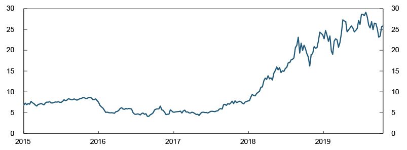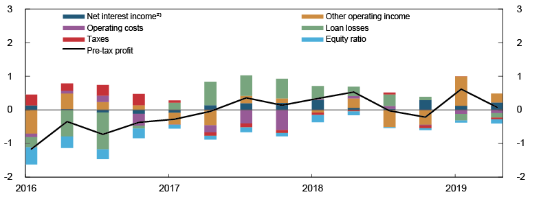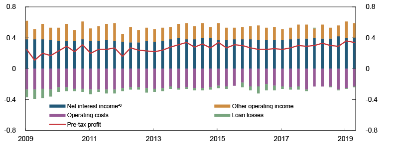 Global economic uncertainty poses a risk to financial stability in Norway. Events in the international economy and financial markets can spread to Norway, and the impact in Norway may be amplified by domestic financial system vulnerabilities. Two such contagion channels are Norwegian exports and banks’ foreign funding. The trade tensions between the US and China remain a source of uncertainty and the UK’s relationship with the EU remains unclarified. Over the past year, uncertainties surrounding growth prospects abroad have led to a broad decline in interest rates. Persistently low interest rates may give rise to high risk-taking and financial imbalances. So far, global uncertainties have not had serious consequences for the Norwegian economy, and Norwegian banks have felt little impact, but this situation can change quickly.