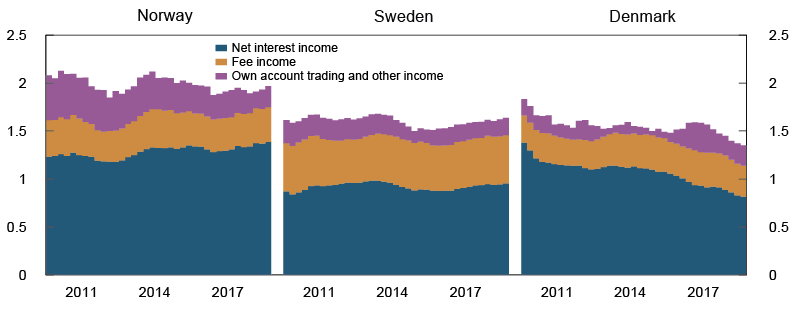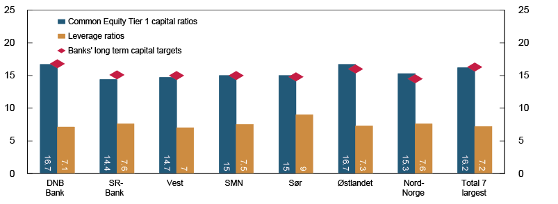 Stable net interest income and low credit losses have enabled the large Norwegian banks to maintain profitability over the past year. All Norwegian banks satisfy the capital requirements. Further ahead, the risk of higher losses among oil-related companies and stronger competition from foreign banks and other operators could pose a threat to profitability.
