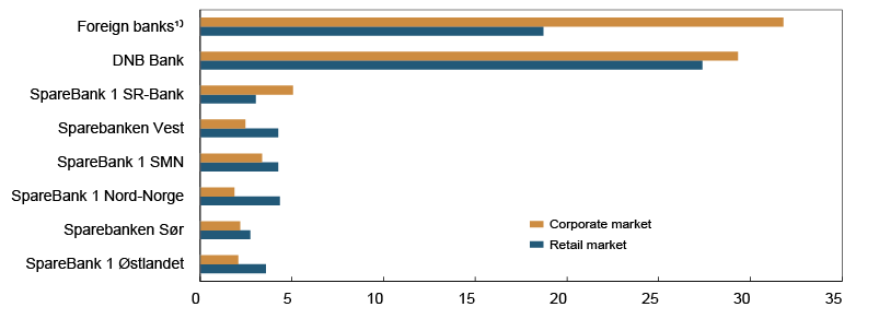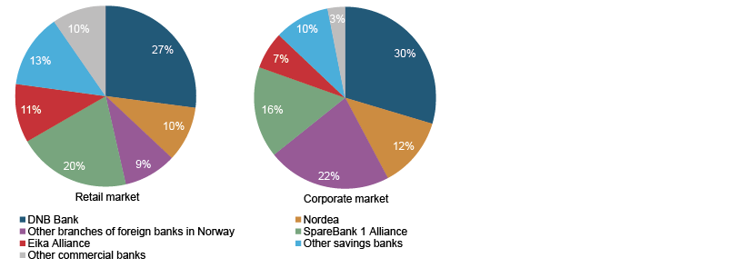 1 All banks in Norway including foreign branches. Nordea is a branch of a foreign bank from 2017. The figures do not include mortgage companies.