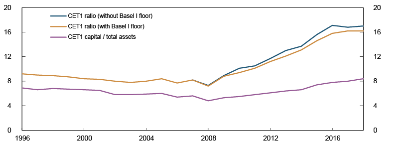 In connection with the implementation of the remainder of the EU capital framework, many banks’ reported capital ratios will rise without this reflecting an improvement in solvency. Norges Bank is of the view that in the current situation, Norwegian banks’ capital levels should not be reduced. Structural systemic risk is high, particularly owing to high household leverage. Since the systemic risk buffer was introduced in 2013, banks have increased their property market exposures, and their cross-holding of covered bonds has also risen. In its consultation response on 30 September, Norges Bank supported as a countermeasure the proposal to increase the systemic risk buffer, an action that will help banks to maintain loss absorbency.