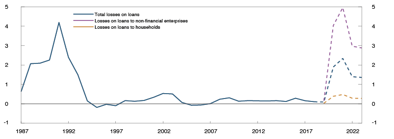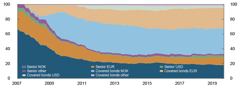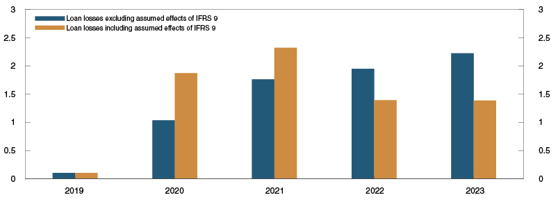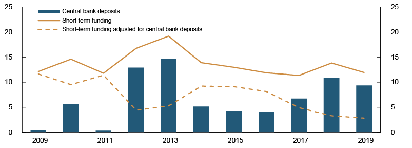 Large Norwegian banks obtain large amounts of funding abroad. At the same time, foreign banks account for around a quarter of all lending in Norway. Global financial turbulence may raise Norwegian banks’ funding costs and lower the supply of credit from foreign banks in Norway, both of which can reduce households’ and firms’ access to credit. Large firms that rely on the global bond market for financing may also be directly affected. Global turbulence has had little impact on Norwegian banks since the 2018 Report.