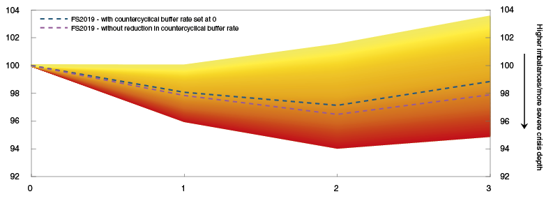 Vulnerabilities related to household debt are high and broadly unchanged since the 2018 Report. High household debt will amplify the negative outcome of a sudden and sharp movement in interest rates, house prices or household income. Most households have room to defer principal repayments, draw on financial buffers or tighten consumption if they are exposed to economic shocks. The danger that a large number of households will tighten consumption at the same time constitutes a systemic risk. This may reduce firms’ earnings and debt-servicing capacity, leading in turn to higher losses on banks’ corporate exposures.