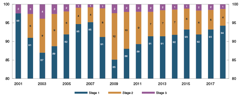 1 Non-performing loans to 2008, 90 days or more past due, 2009–2017, 30 days or more past due and from 2018, 90 days or more past due.